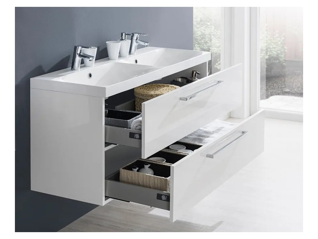 Skříňka je dodávána kompletně s dvojumyvadlem. Vodovodní baterie a sifony nejsou součástí balení.