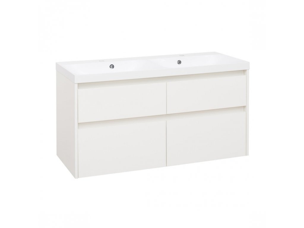 Koupelnová skříňka s dvojumyvadlem z litého mramoru Duomo 120x46 cm, Blílá lesklá