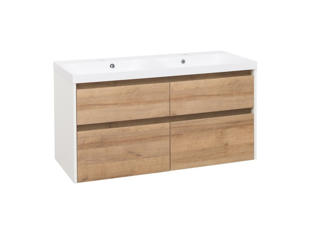 Koupelnová skříňka s dvojumyvadlem z litého mramoru Duomo 120x46 cm,Bílá/dub