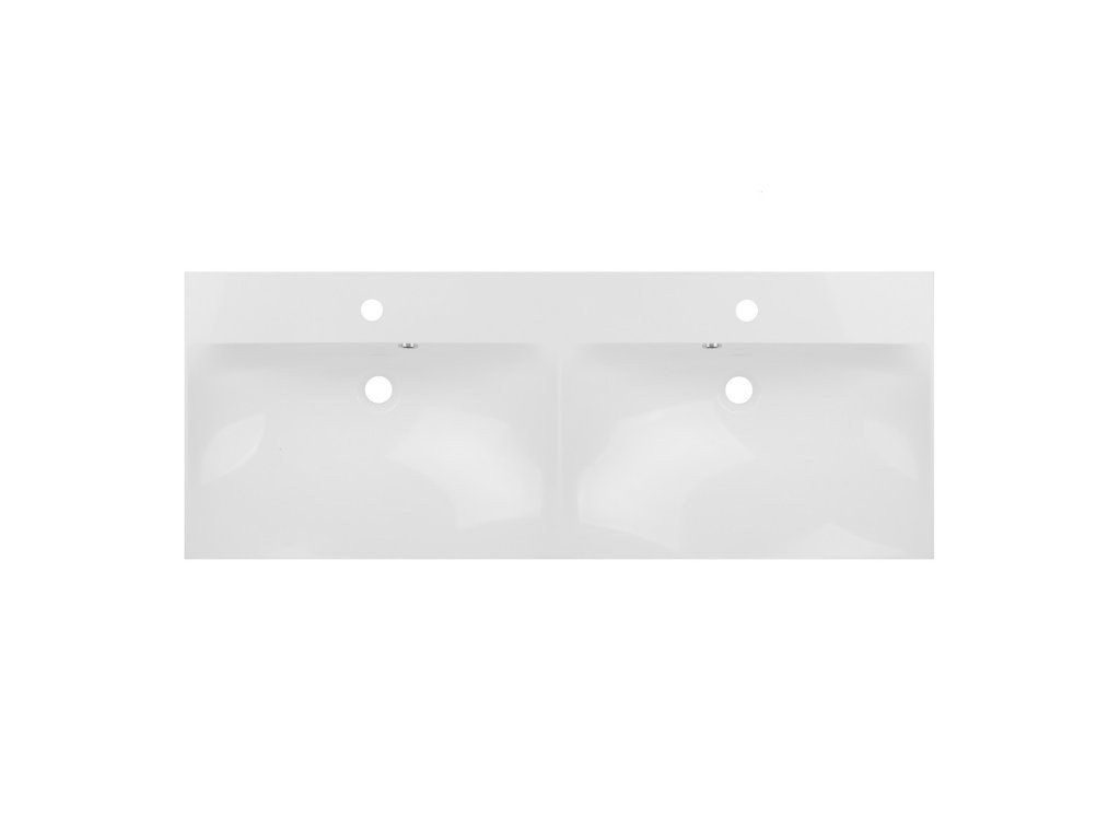 S šířkou 121 cm už nemusíte dělat kompromisy. Dvojumyvadlo z litého mramoru poskytuje dvě plnohodnotné mycí zóny a dostatek odkládací plochy pro kosmetiku. Čistě bílý lesk skříňky v kombinaci s hladkým povrchem umyvadla vytváří luxusní monolit, který se snadno udržuje a vypadá skvěle i po letech.