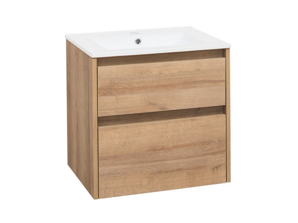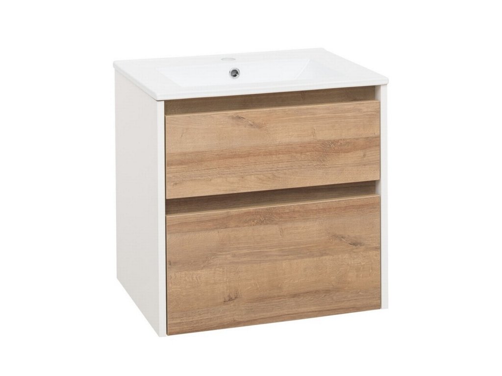 EBS Koupelnový Set DUOMO Závěsná Skříňka 60x46 cm s Keramickým Umyvadlem Slim-Line, Dvě Zásuvky Soft-Close, Bezúchytkové Otevírání, Laserové Hrany (Více Barev)