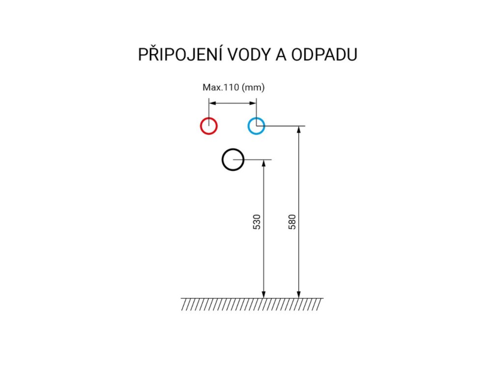 Výška (V): 53 cm (přesně 530 milimetrů), celková instalační výška skříňky s umyvadlem.