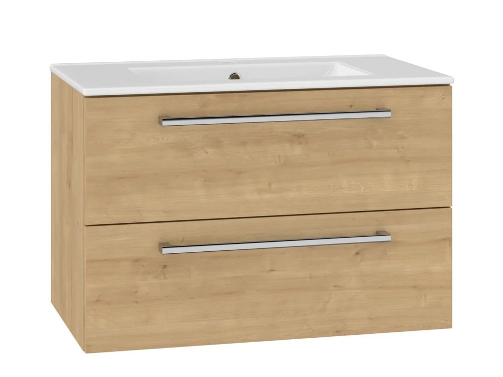 Koupelnová závěsná Skříňka s keramickým umyvadlem PURE 81x46 cm Dub Arlington