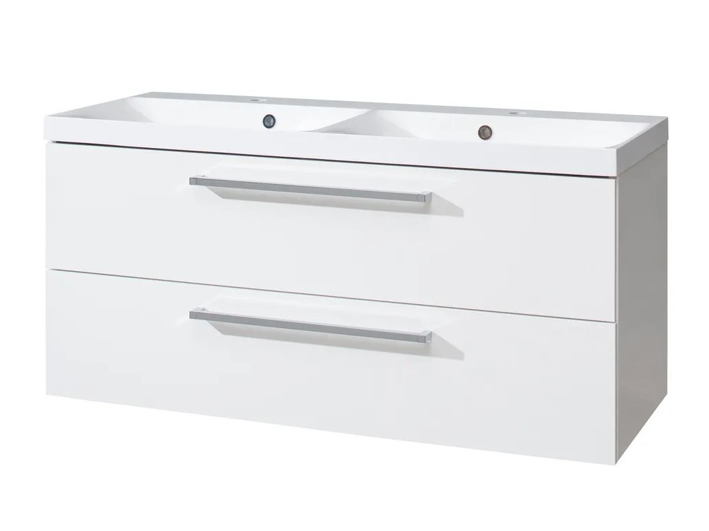 Skříňka je dodávána kompletně s dvojumyvadlem. Vodovodní baterie a sifony nejsou součástí balení.