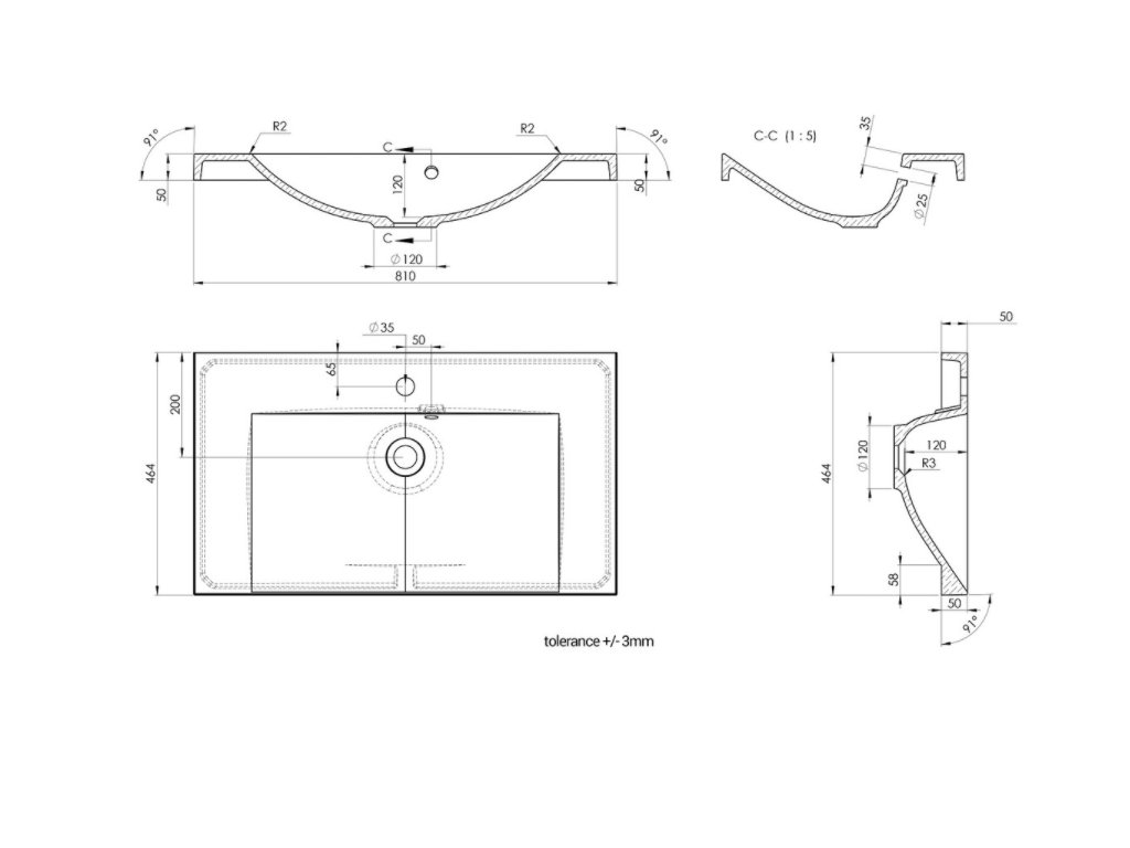 Materiál umyvadla: Litý mramor (dolomit) s povrchovou úpravou Gelcoat