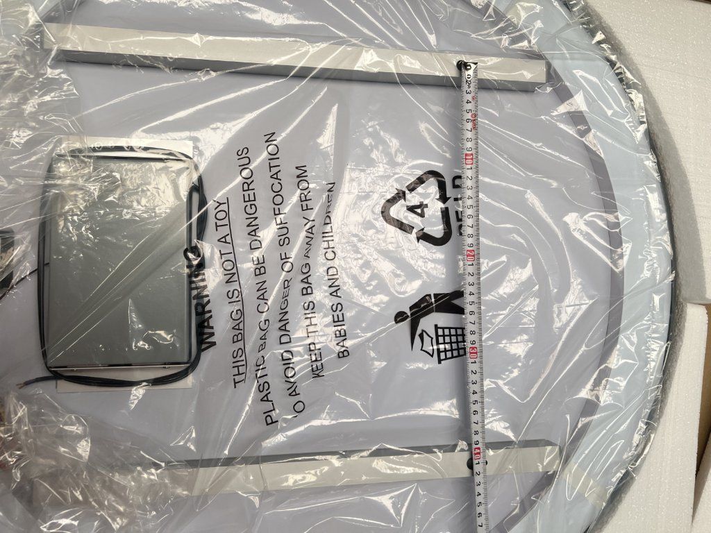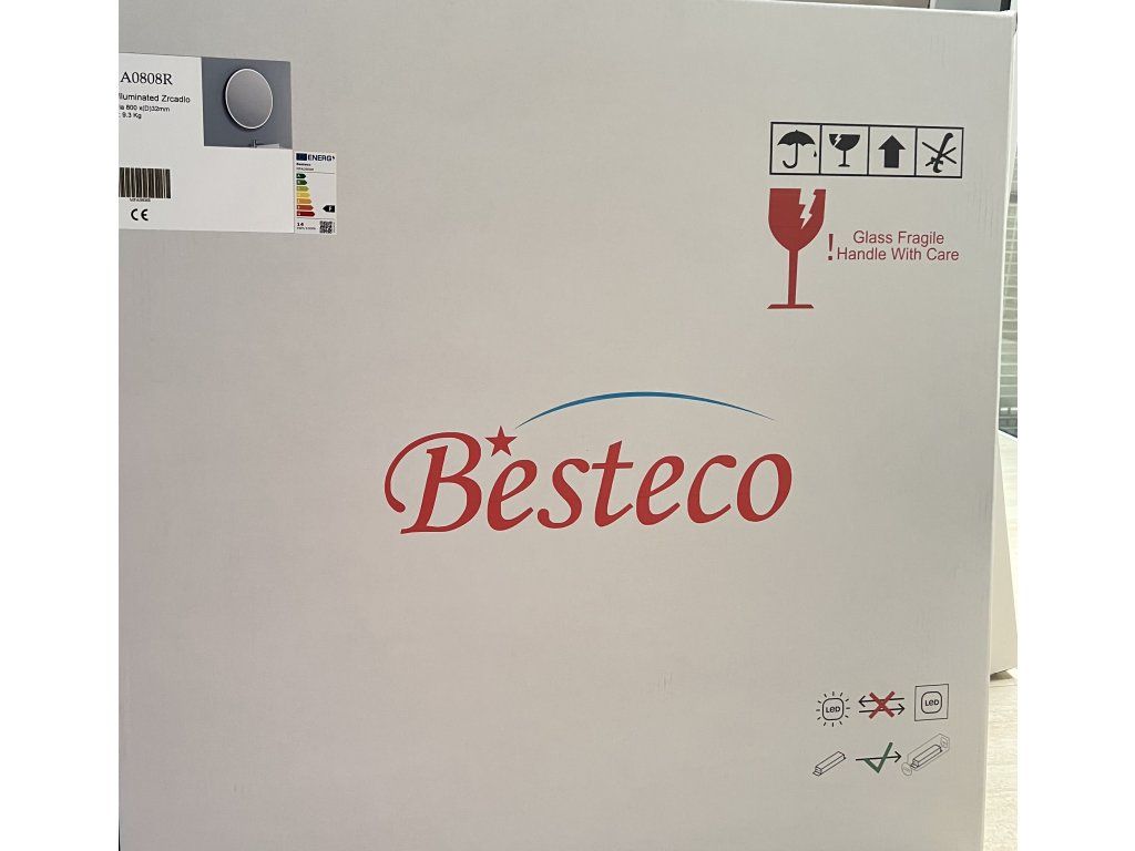🔌 Napájení: Přímé připojení do elektrické sítě 230 V kabelem vyvedeným ze zdi za zrcadlem. 📏 Rozměry: Průměr 800 mm, Hloubka cca 35 mm. 🔨 Instalace: Na stěnu pomocí úchytů na zadním hliníkovém rámu.