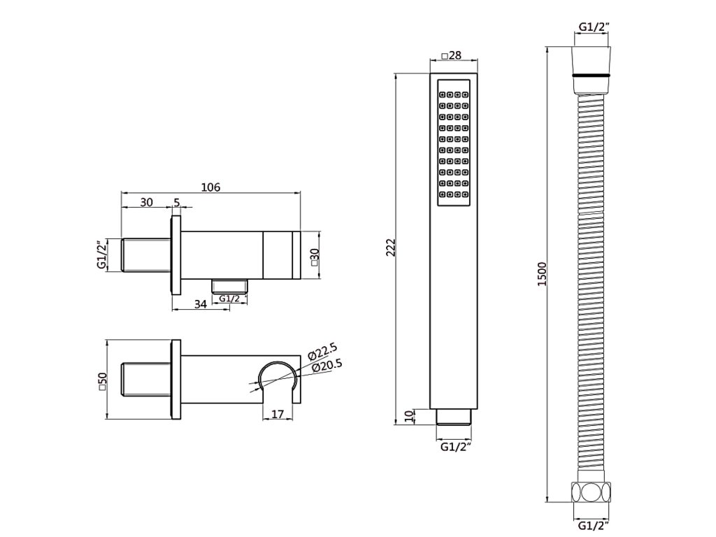 Kulatý vývod ze zdi pro ruční sprchu black, s příslušenstvím