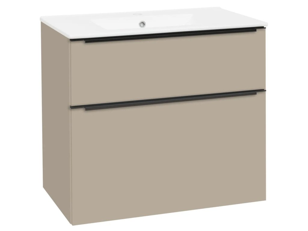 Matná skříňka s keramickým umyvadlem 80x48 cm, šedá, bílá, béžová