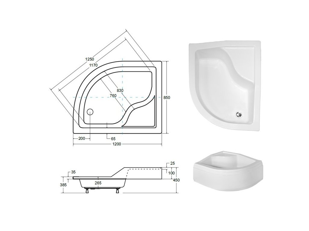 MAXI, hluboká asymetrická sprchová vanička 120x80x24 cm levá