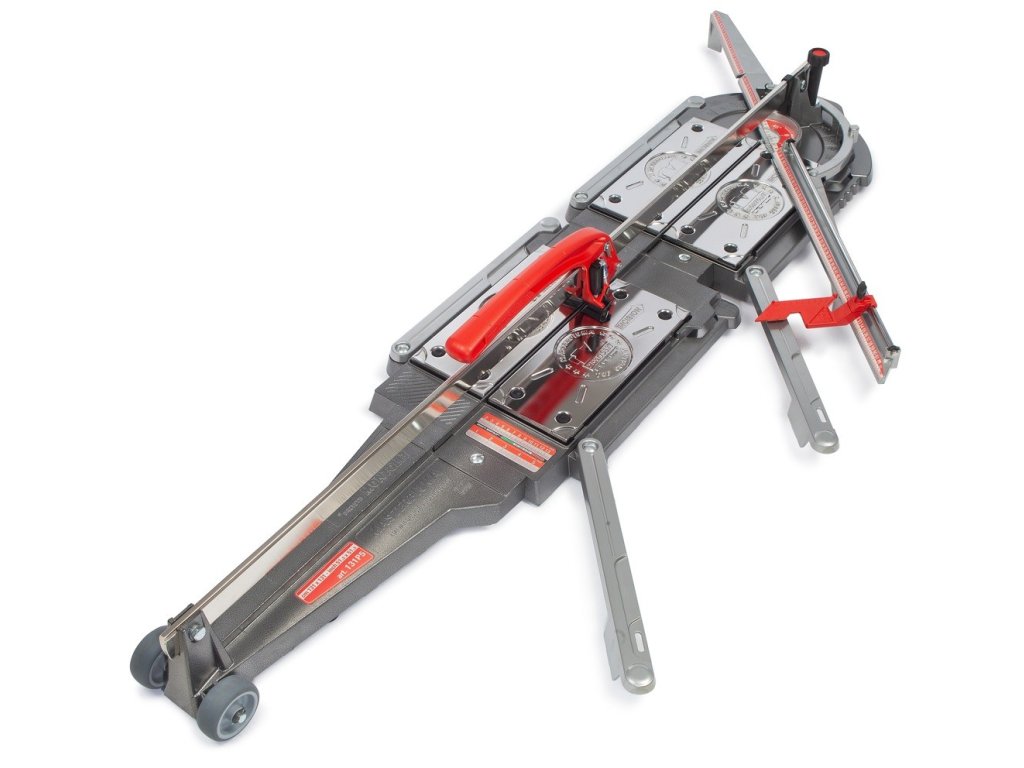 MASTERPIUMA 131P5 - ruční řezačka na obklady a dlažbu. délka řezu 131 cm diagonální řezání materiálu 92 x 92 cm ideální použití pro dlaždice tloušťky 5-15 mm hmotnost 25 kg řezání mozaiky pomocí speciální gumové podložky MOSAKIT 100% vyrobeno v Itálii viditelné kolečko při řezání boční výklopné podpěry na obě strany