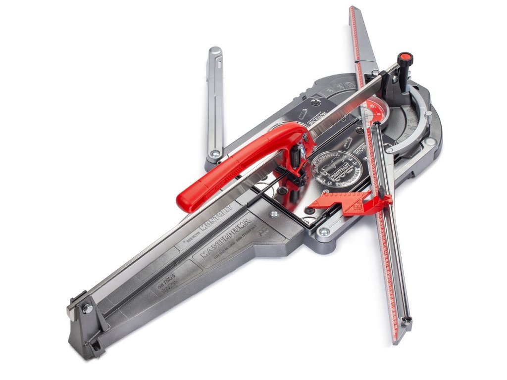 MASTERPIUMA 75P5 - ruční řezačka na obklady a dlažbu délka řezu 75 cm diagonální řezání materiálu 53 x 53 cm ideální použití pro dlaždice tloušťky 5-15 mm hmotnost 14 kg řezání mozaiky pomocí speciální gumové podložky MOSAKIT 100% vyrobeno v Itálii viditelné kolečko při řezání boční výklopné podpěry na obě strany