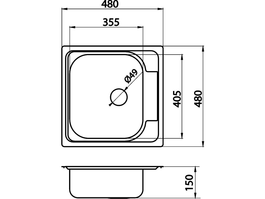 Nerezový dřez 48x48 cm bez odkapu (tkaná textura)