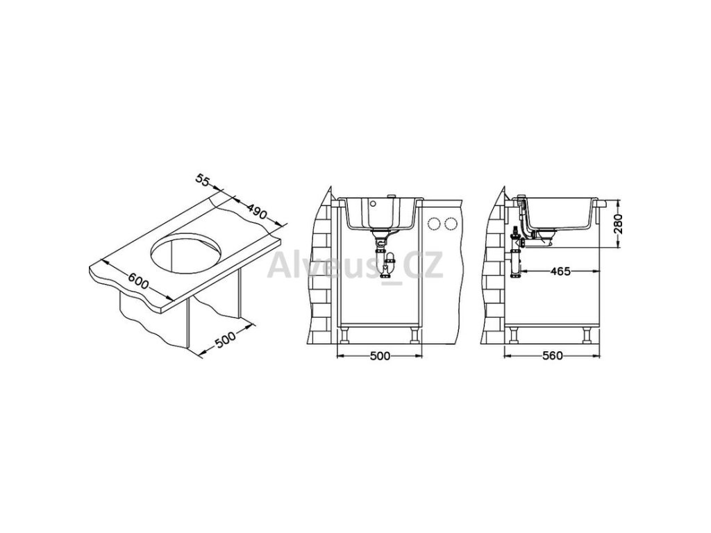 Excentrický sítkový ventil 3 1/2 s přepadem, sifon pro úsporu místa s odbočkou na myčku