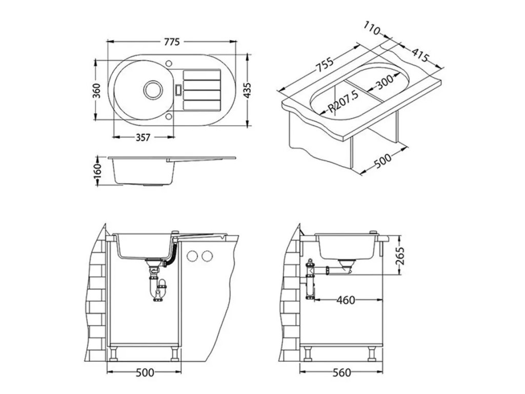 NIAGARA40/11 Dřez Granitový dřez s odkapem oboustranné provedení, 77,5x43,5 cm
