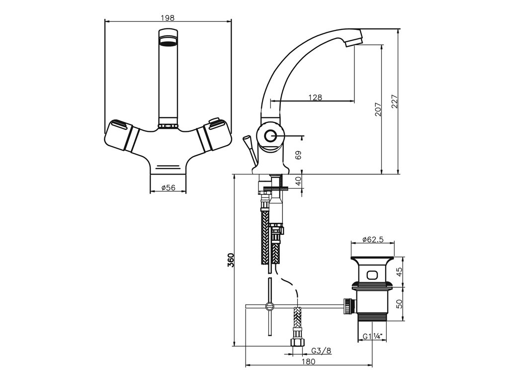 Kompletní balení: Součástí jsou flexibilní hadičky, upevňovací sada a mechanická výpusť s táhlem.
