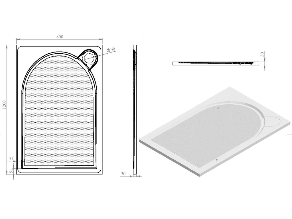 Obdelníková mramorová sprchová vanička LAKA 140x80x3 cm