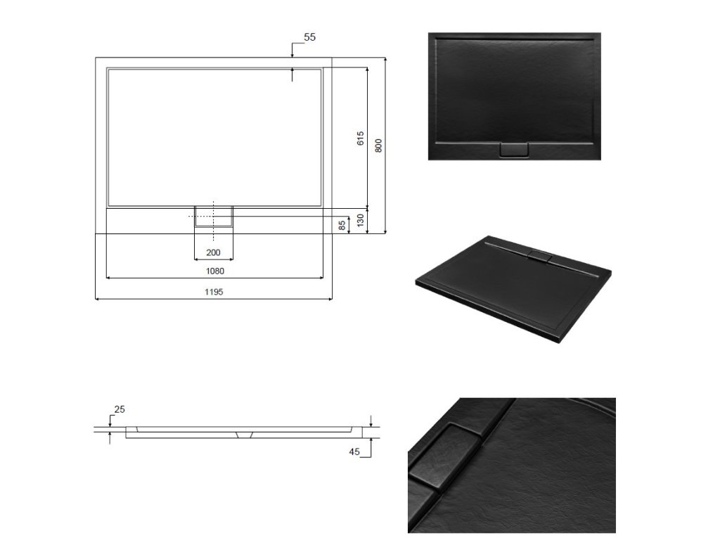 Obdélníková sprchová vanička STONE EFFECT AXIM 120x80x4.5 cm
