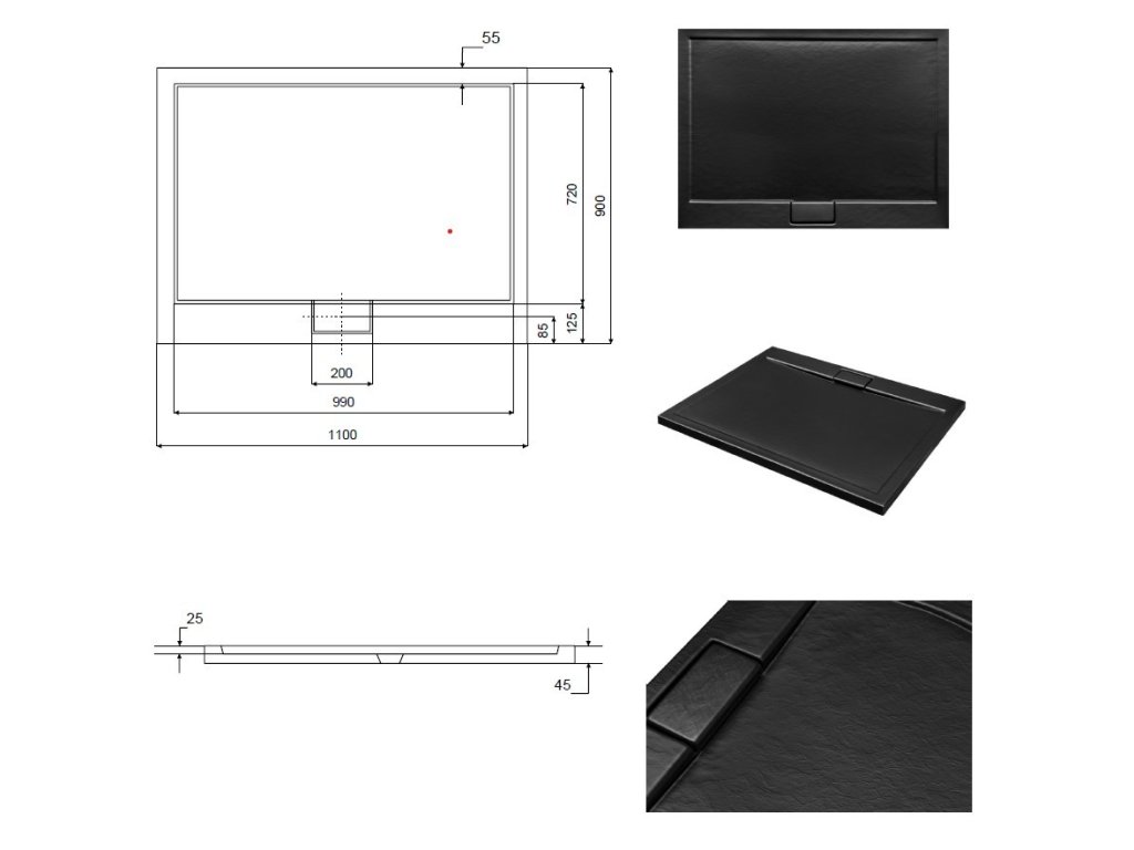 Obdélníková sprchová vanička STONE EFFECT AXIM 110x90x4.5 cm