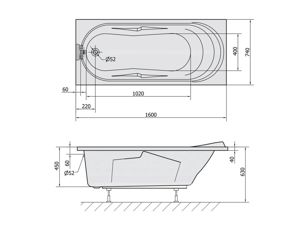 Obdélníková vana Adriana 160x74 cm, bílá 43111
