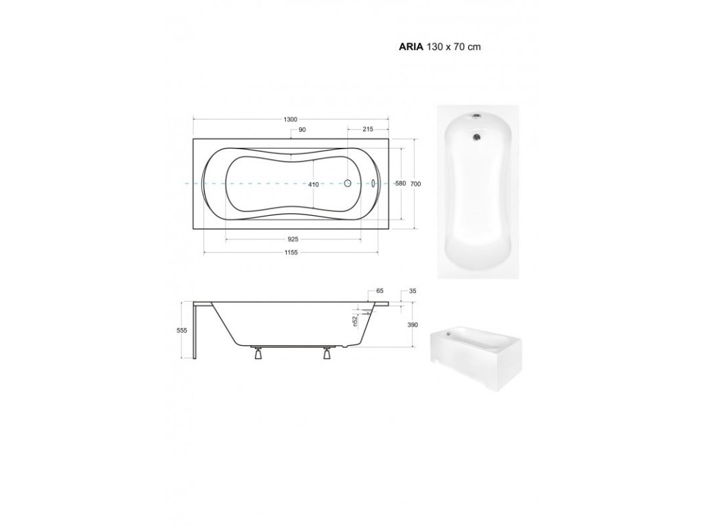 Obdélníková vana ARIA 130x70 cm