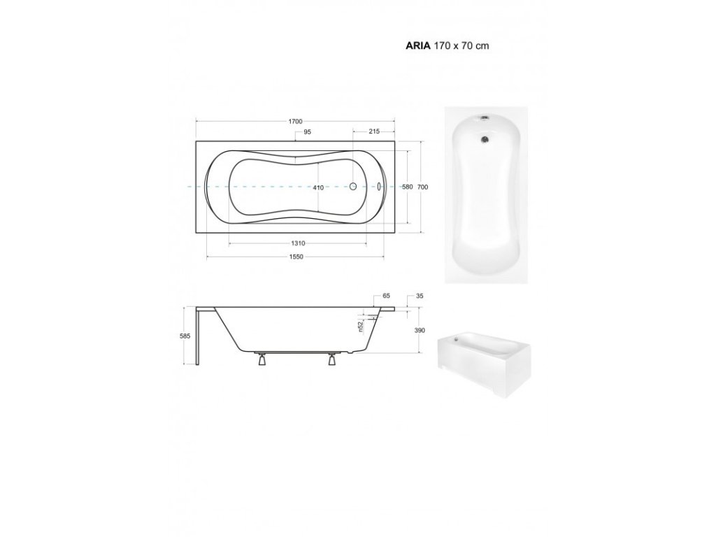 Obdélníková vana ARIA 170x70 cm