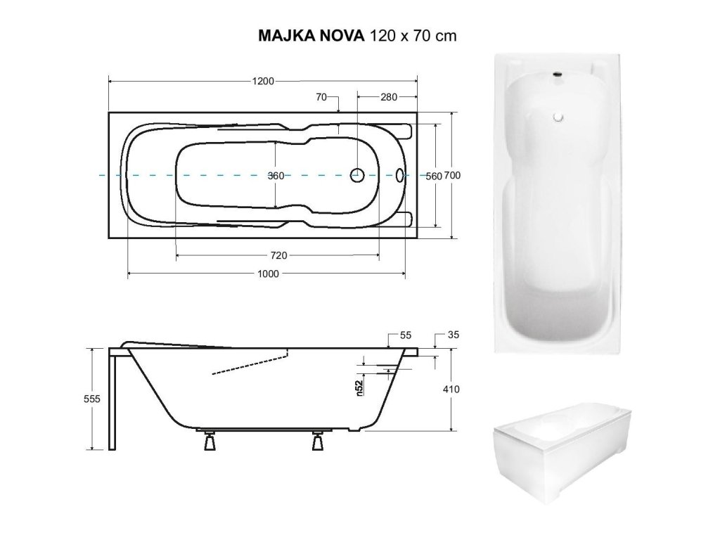 Obdélníková vana MAJKA NOVA 120x70 cm