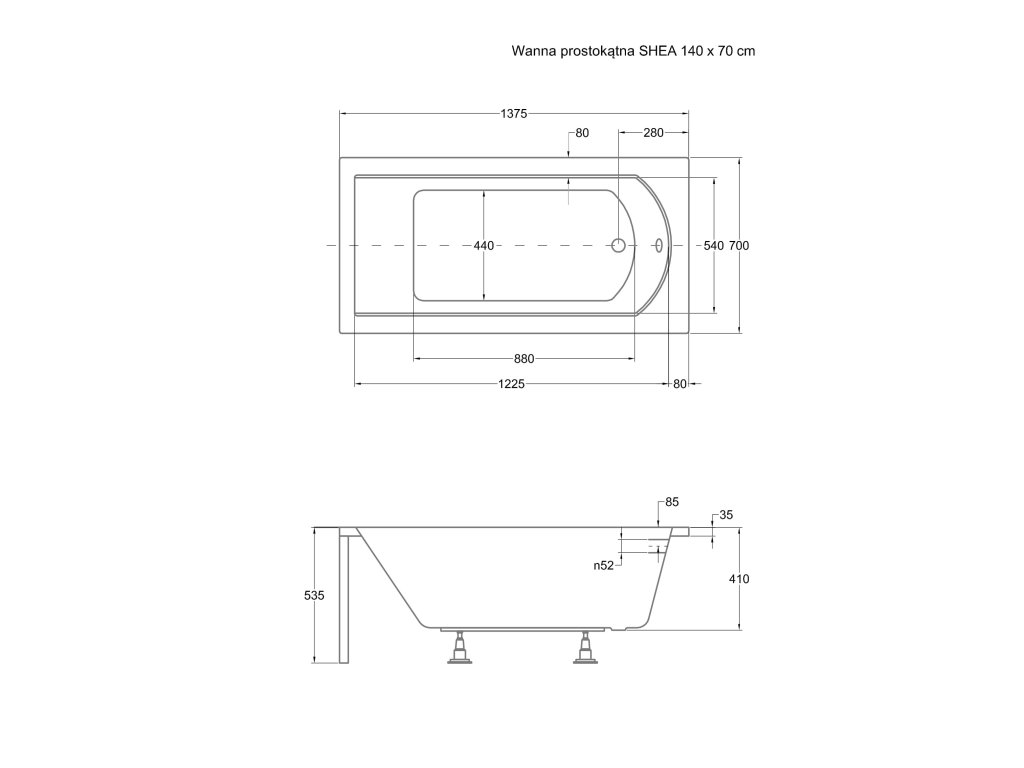 Obdélníková vana SHEA 140x70 cm