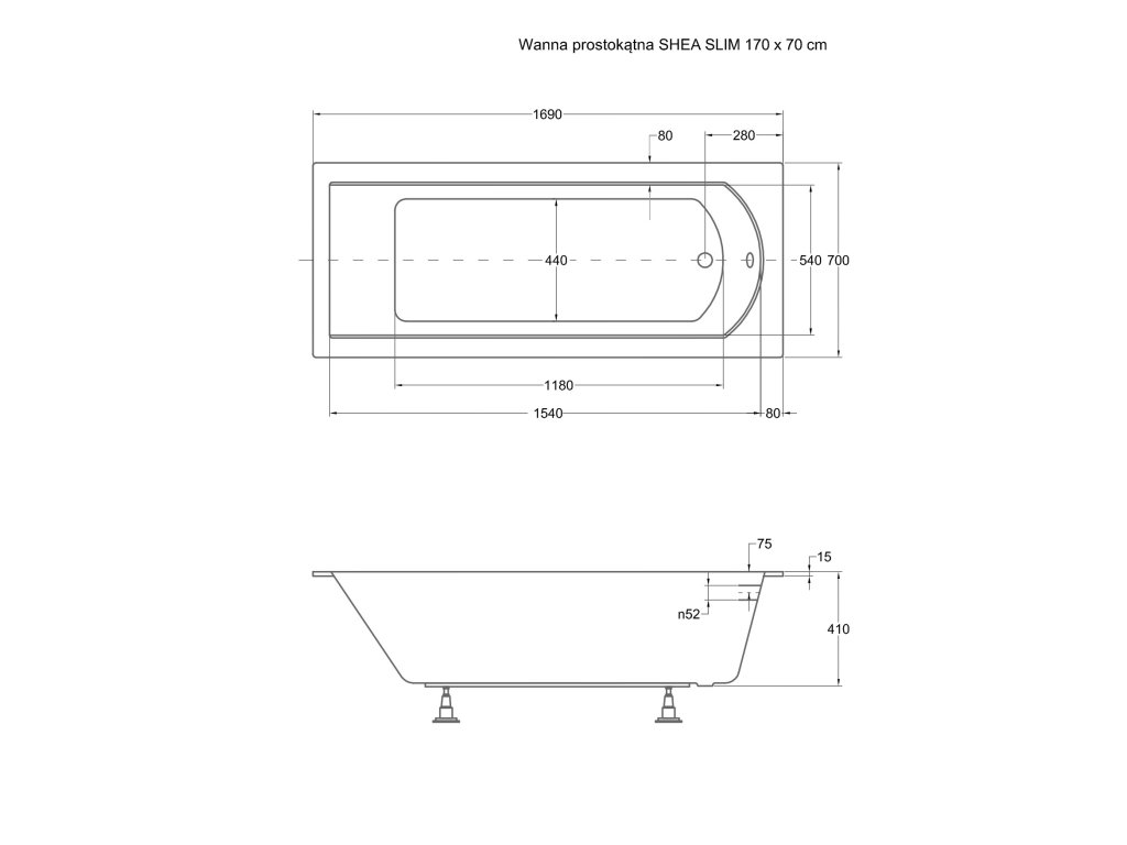 Obdélníková vana SHEA SLIM 170x70 cm