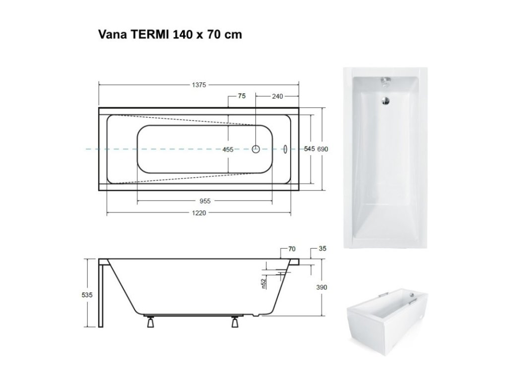 Obdélníková vana TERMI 140x70 cm