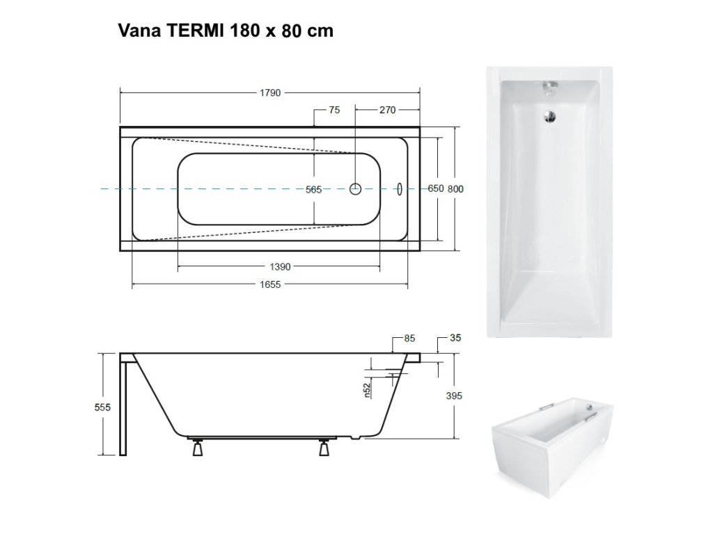 Obdélníková vana TERMI 180x80 cm