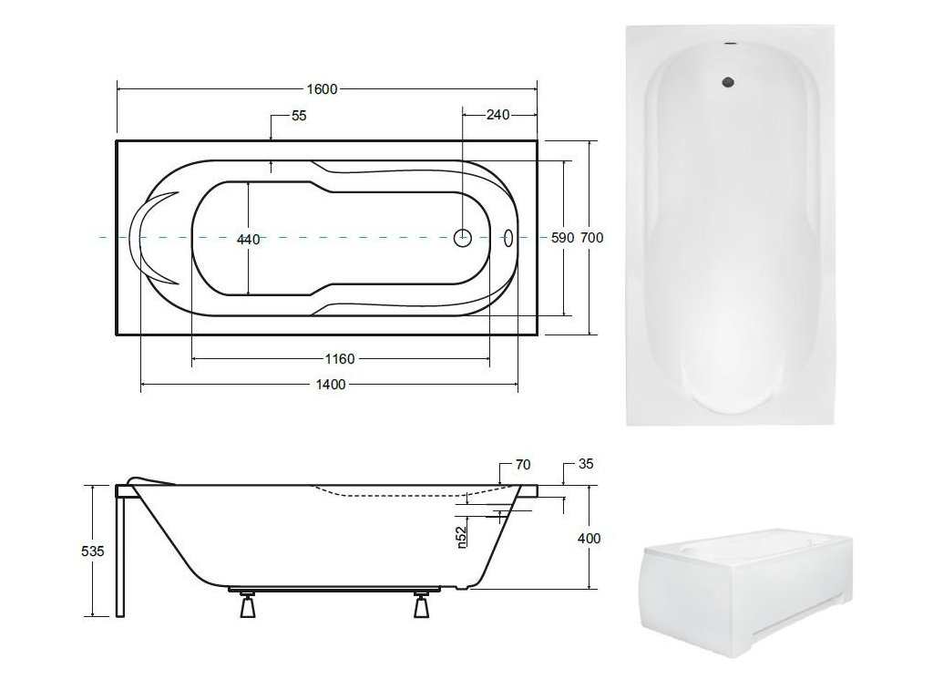 | Rozměr vany (cm): | 160 × 70 |