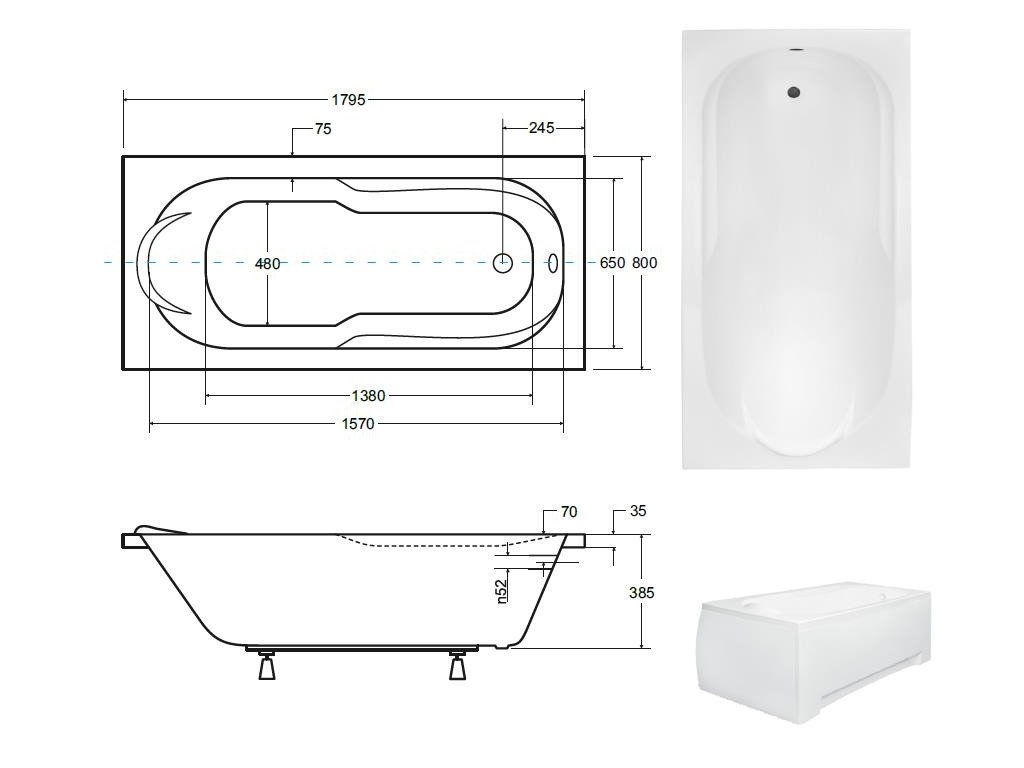 | Tvar: | Obdélníková vana |