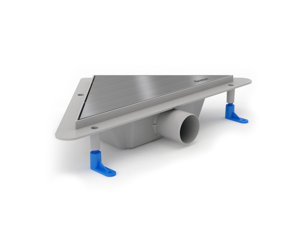 Tento moderní odtokový rohový žlab nabízí velmi kvalitní zpracování a kombinaci pevného plastu s leštěným nerezovým roštem.