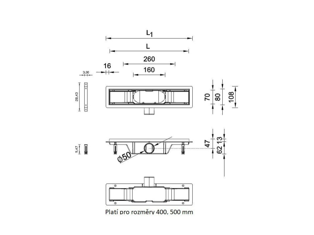 - Odtok 50 mm