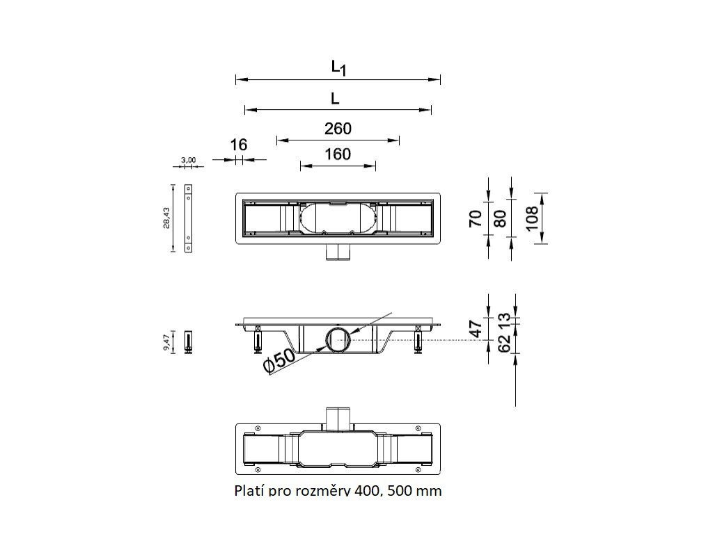 - Odtok 50 mm