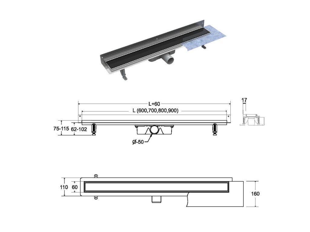 - Odtok pr. 50 mm