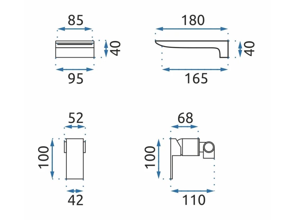 Vyložení Ramínka: Pevný výtok má optimální dosah 16,5 cm (165 mm), což je ideální pro použití s moderními umyvadly na desku, zajišťující dostatečný prostor a uživatelský komfort bez stříkání.