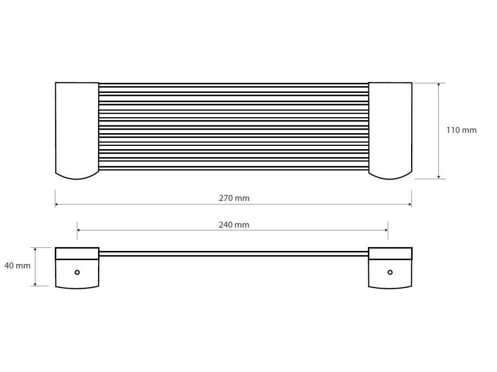 - rozměr: 270×40×110 mm (šířka x výška x hloubka)