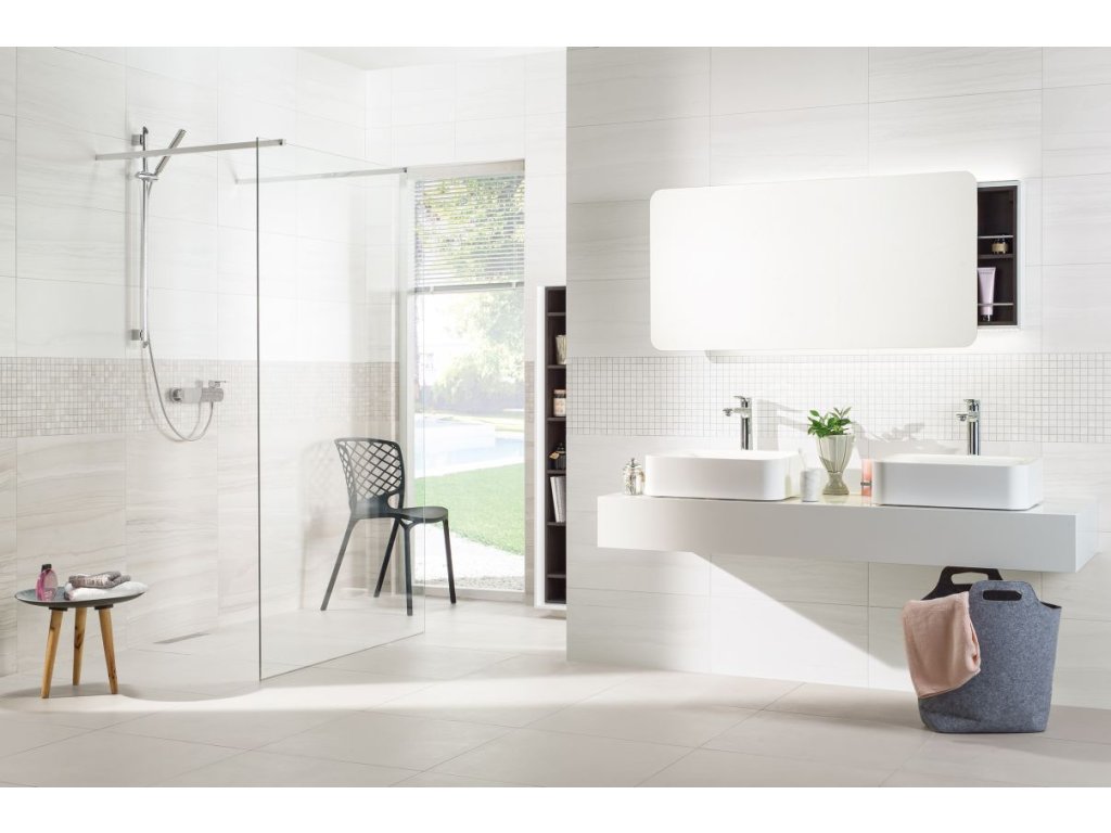 Mramorový design si žádá kvalitní doplňky. Pro klasický luxusní vzhled kombinujte obklad RAKO BOA se zlatými nebo mosaznými bateriemi. Pokud preferujete moderní minimalismus, sáhněte po černých matných doplňcích, které vytvoří s bílým mramorem úchvatný kontrast.