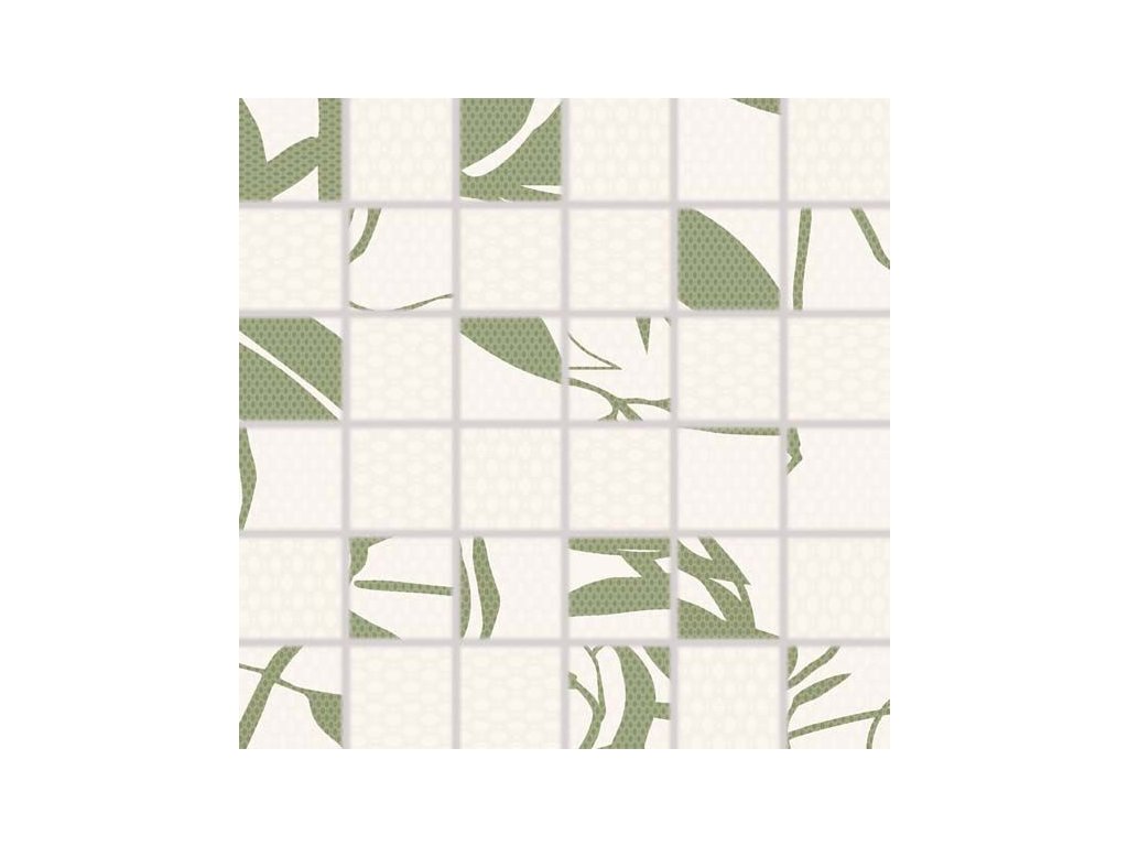 Rektifikovaná mozaika v barvě zelená o rozměru 29,8 x 29,8 cm a tloušťce 8 mm s matným a lesklým povrchem. S velkými a zcela nahodilými odchylkami v kolísání odstínů barev, struktury povrchu a kresby. Vhodné pouze do interiéru.