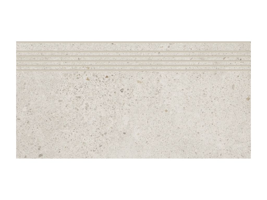 Rektifikovaná, mrazuvzdorná schodovka v barvě slonová kost v designu beton o rozměru 29,8 x 59,8 cm a tloušťce 9 mm. Matný, hladký povrch s velkými odchylkami v kolísání odstínů barev, struktury a kresby. Vhodné do exteriéru i interiéru