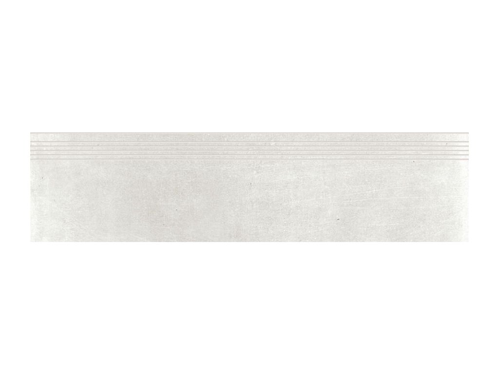 Rektifikovaná, mrazuvzdorná schodovka v barvě bílošedá v designu beton o rozměru 29,8 x 119,8 cm a tloušťce 9 mm. Matný, hladký povrch s velkými odchylkami v kolísání odstínů barev, struktury a kresby. S vysokou odolností vůči opotřebení (PEI 5). Vhodné do exteriéru i interiéru