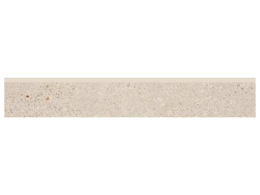 Rektifikovaný, mrazuvzdorný sokl v barvě béžová v designu beton o rozměru 7,2 x 59,8 cm a tloušťce 9 mm. Matný, hladký povrch s velkými odchylkami v kolísání odstínů barev, struktury a kresby. Vhodné do exteriéru i interiéru.