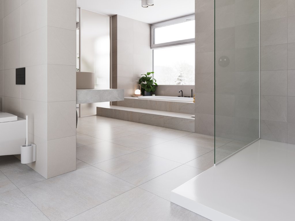 🎨 Design a Vzhled Odstín této varianty je sytější šedá (Grey), inspirovaná přírodním pískovcem. Kresba je decentní, s jemnými odchylkami v tónu, což zajišťuje, že plocha nevypadá uměle. Matný povrch je na dotek hebký a velmi elegantní. Tato barva skvěle funguje jako kontrastní prvek – dokáže "uzemnit" prostor a nechat vyniknout bílou sanitu (vanu, umyvadlo, toaletu).