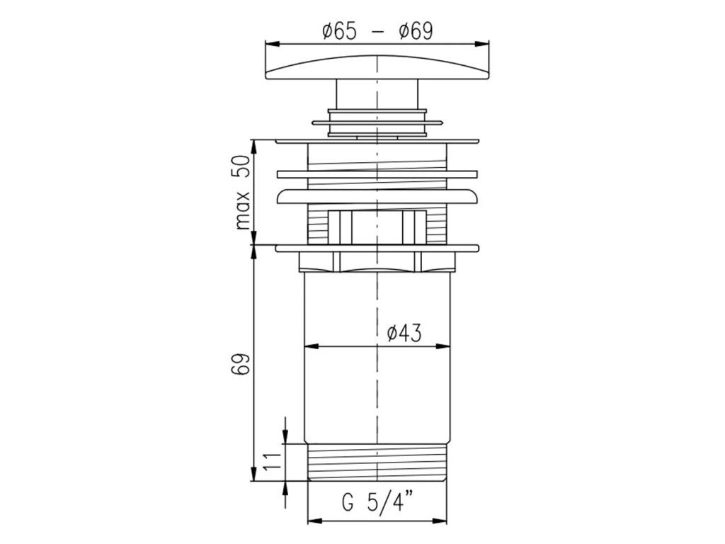 Funkce CLICK-CLACK: Výpusť se ovládá jednoduchým stiskem zátky. Jedno stlačení výpusť uzavře a podrží vodu v umyvadle, druhé stlačení ji otevře.