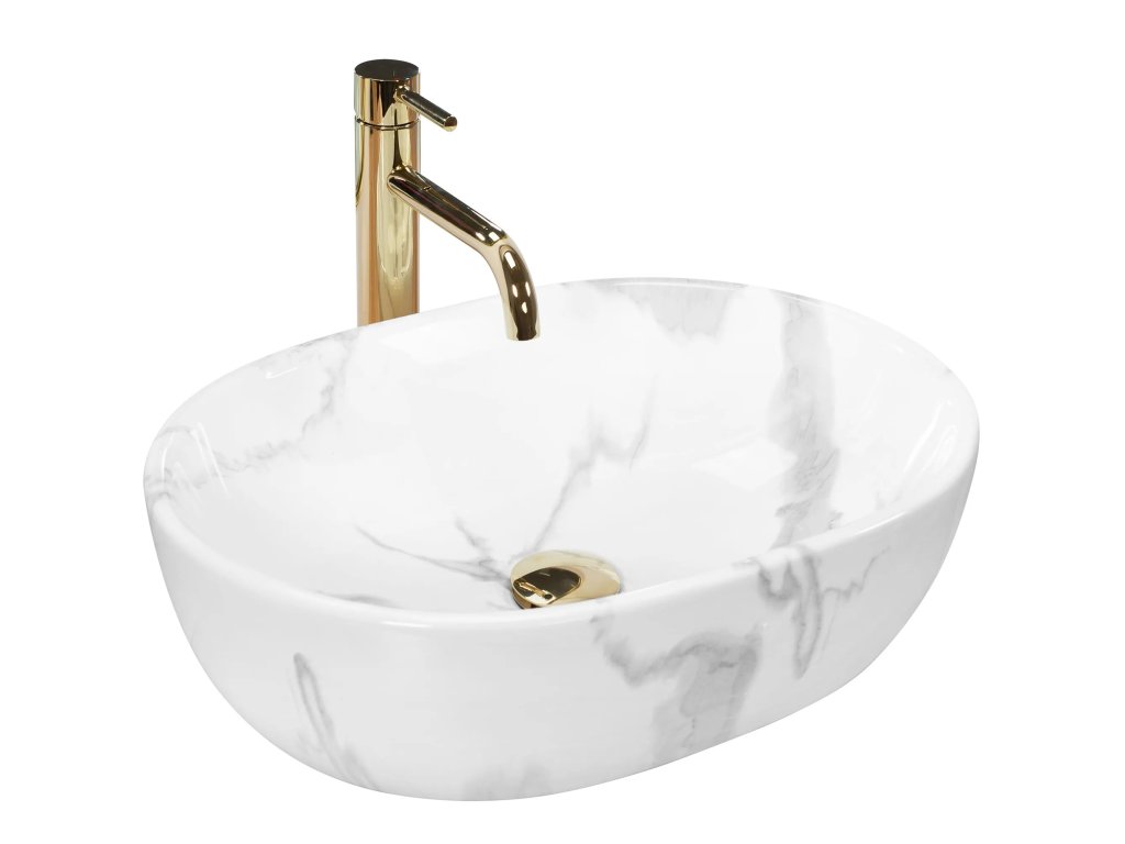 REA AMELIA MARMO Keramické umyvadlo na desku REA-U0507, Imitace mramoru, Bez přepadu a otvoru, Černo-bílá, 48x35 cm