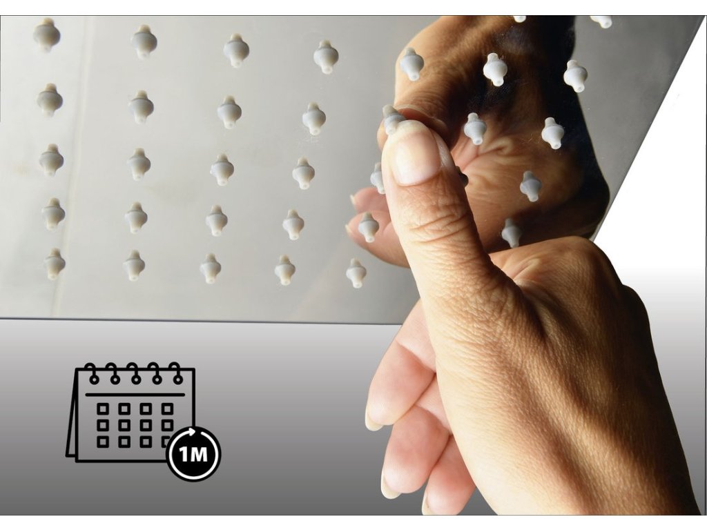 Technologická dokonalost je podpořena systémem Easy-clean (AntiCalc), kdy jsou trysky vyrobeny ze silikonu. To je klíčové pro uživatelský komfort údržby, jelikož vodní kámen a nečistoty lze snadno odstranit pouhým dotykem prstu, což prodlužuje dlouhou životnost produktu. Materiálem je odolný Plast s kvalitním pochromováním.