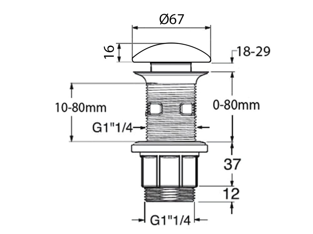 Flexibilita a Určení: Výpusť má standardní rozměr a díky nastavitelné výšce závitu () se hodí pro většinu umyvadel. Je primárně doporučena pro umyvadla bez přepadu.