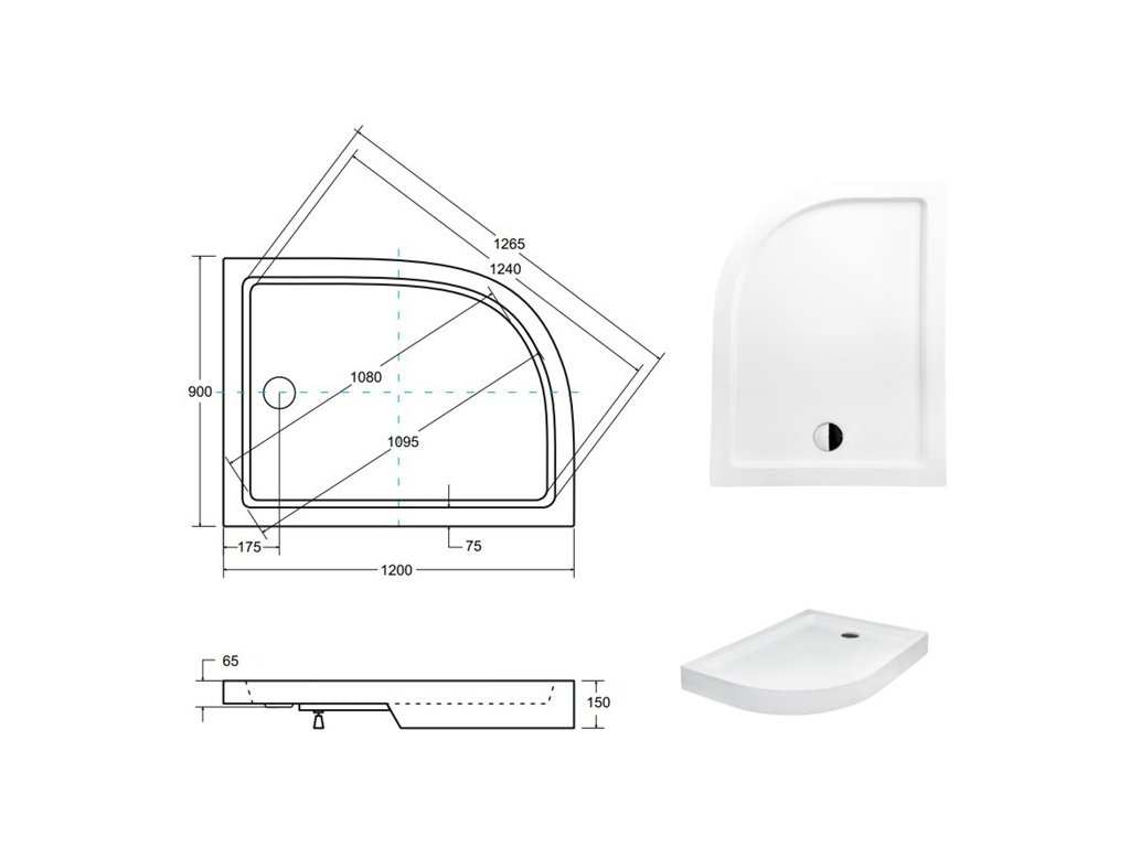 SATURN, asymetrická sprchová vanička akrylátová 120x90x15 cm pravá
