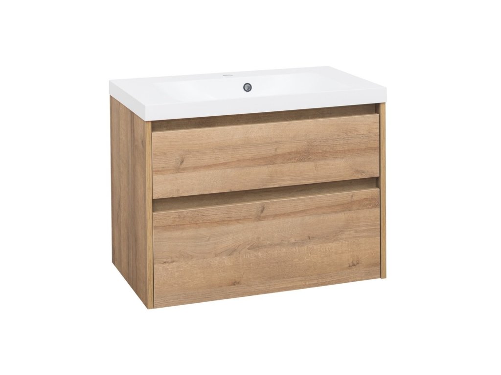Kompaktní, ale prostorná skříňka DUOMO je navržena pro umyvadlové sestavy o nominální šířce 80-81 cm. Přesné rozměry setu (šířka × hloubka × výška) jsou: